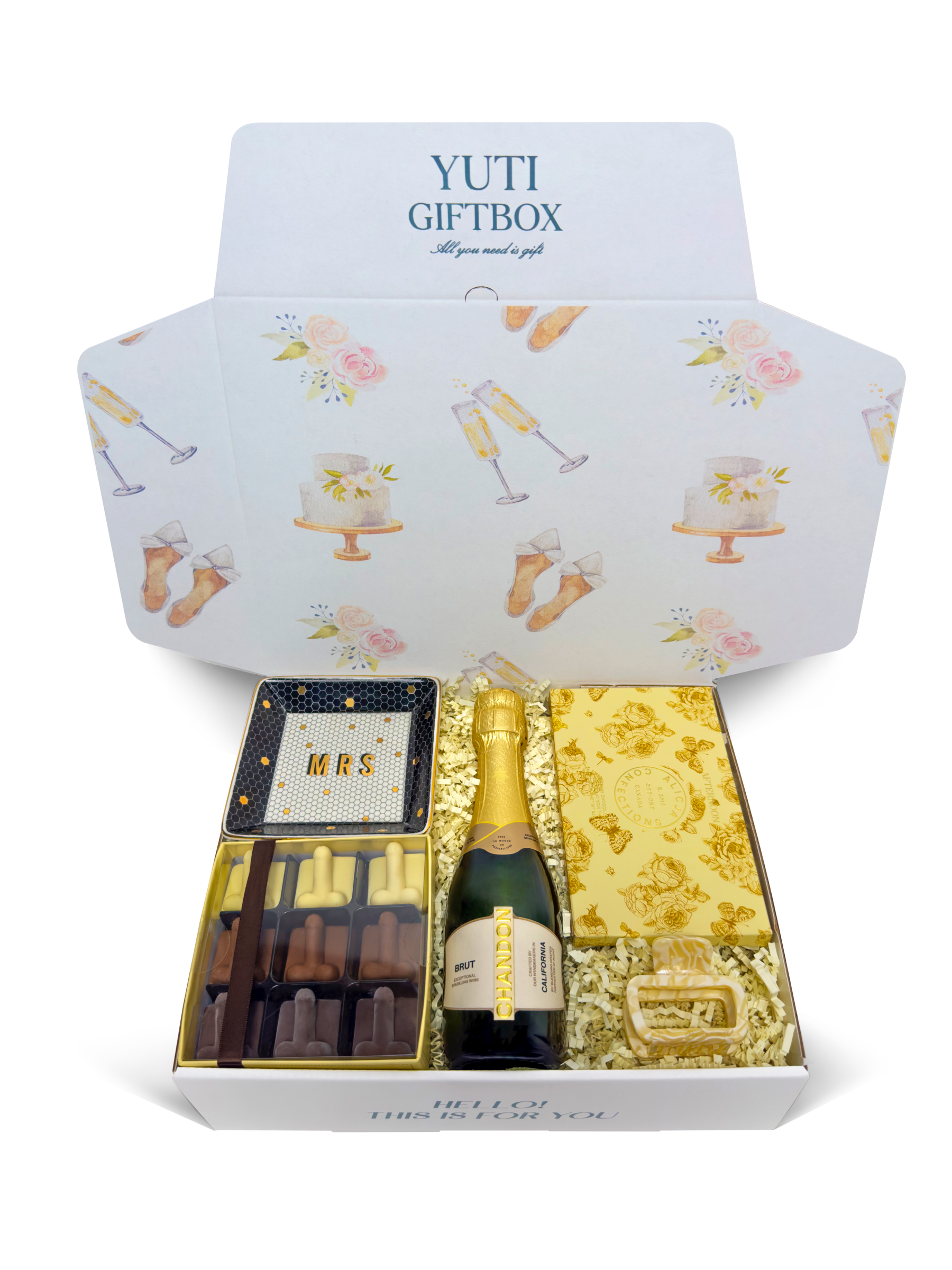 YUTI Gift Box Collection of wedding celebration includes beautiful range of luxe personalised and customized bridal proposal, Bridesmaid gifts, Wedding congratulatory and Bride to be gift boxes, including Mr & Mrs and Bride & Groom present Packages.